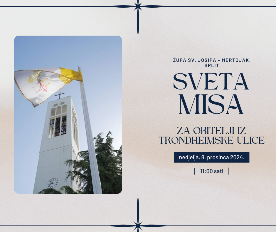 U nedjelju 8. prosinca 2024. u 11 sati slavit će se sveta misa za obitelji iz Trondheimske ulice. Nakon svete mise bit ...