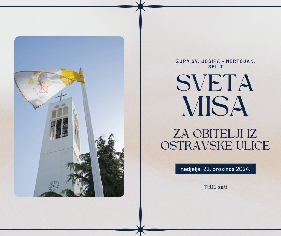 U nedjelju 22. prosinca 2024. u 11 sati slavit će se sveta misa za obitelji iz Ostravske ulice. Nakon svete mise bit ć...
